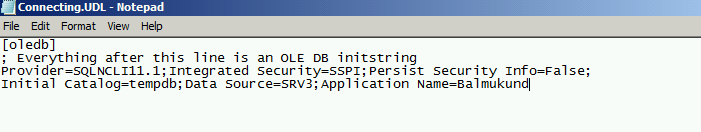UDL stands for Universal Data Link. Its “universal” means it is not just to test SQL Server connectivity test, but it works for other RDBMS as well. We can also get connection string using UDL file. Lets start with connectivity first.
