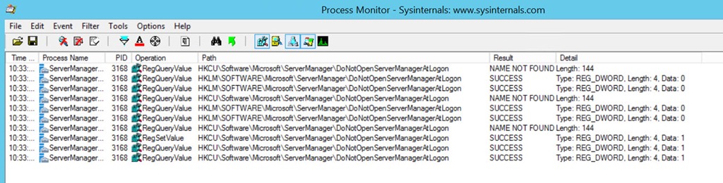 I work in troubleshooting issues and try to find what happens when the box is checked. So I captured Process Monitor and noted all registry access done by ServerManager.exe and found below