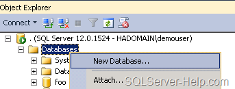 • Right Click on database folder in SSMS and Choose “New database”. This is the same place where we create regular database.