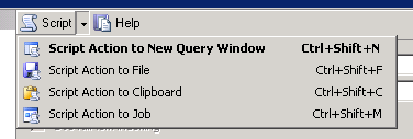 Do you know that I can remember all command by heart? I am joking! If you want to script this action, use the “Script” button (shown in below image). This would give us the same script (with little more setting) which we use in previous part.
