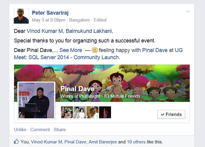 Well, I didn’t know this till someone posted in SQL Bangalore User Group Facebook page. There is a lot of action there. It’s like a Mini SQL Forum. Join there for more learning!